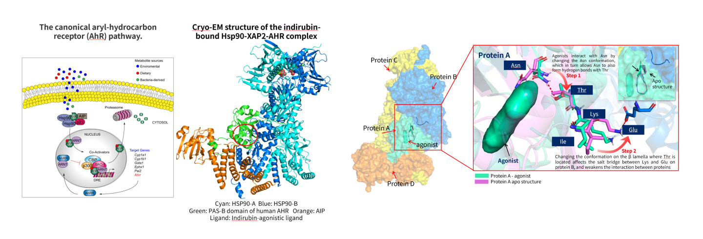 - MD simulations revealed the value of Molecular Dynamics: Through long-term dynamics simulations of tens of microseconds, it was found that the binding of the agonist to the allosteric site can trigger a cascade of pushing conformational changes between the side chains of key residues, ultimately leading to weakened protein-protein interactions.